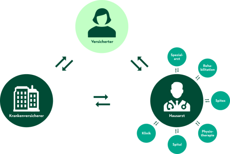 Durch die verbesserte Zusammenarbeit aller Beteiligten können Doppelspurigkeiten und Mehrfachuntersuchungen vermieden werden. Im Teamwork mit ausgewählten Spezial- und Spitalärztinnen und -ärzten sowie anderen Leistungserbringern im Gesundheitswesen kann eine qualitativ hochwertige medizinische Versorgung bei Krankheit, Unfall und Mutterschaft gewährleistet werden.